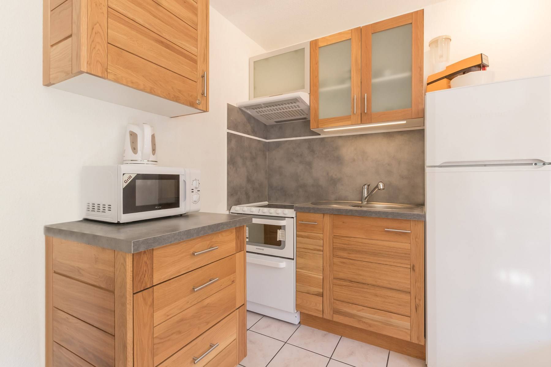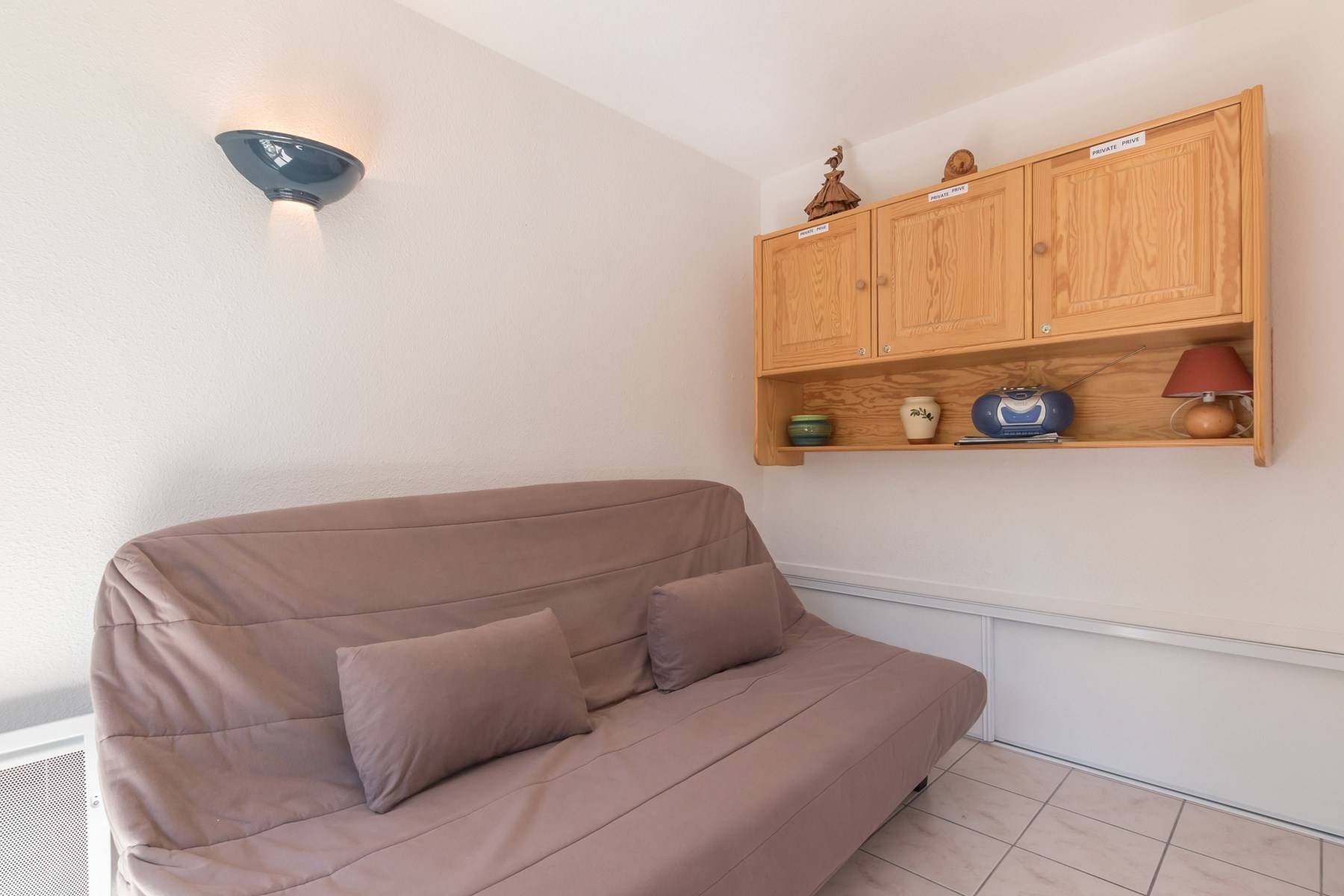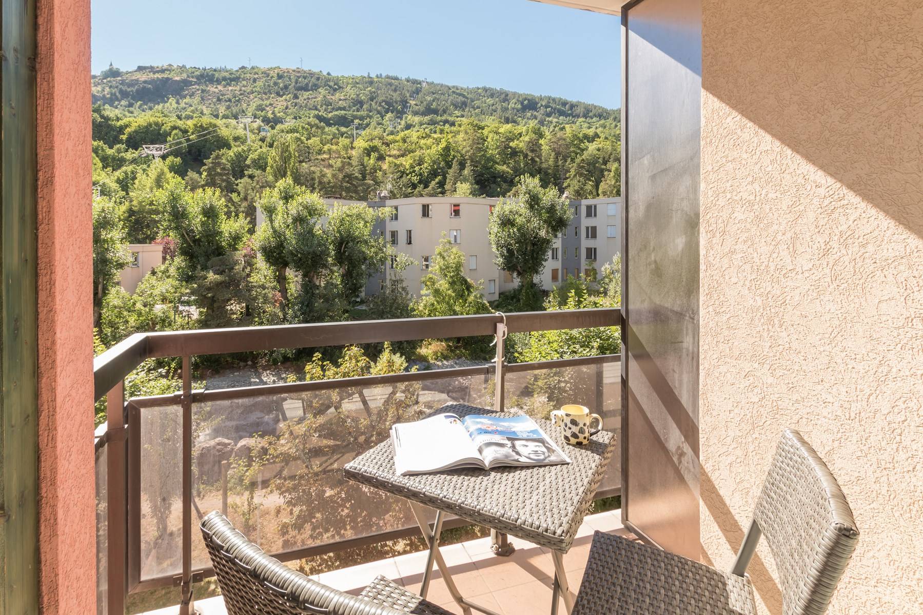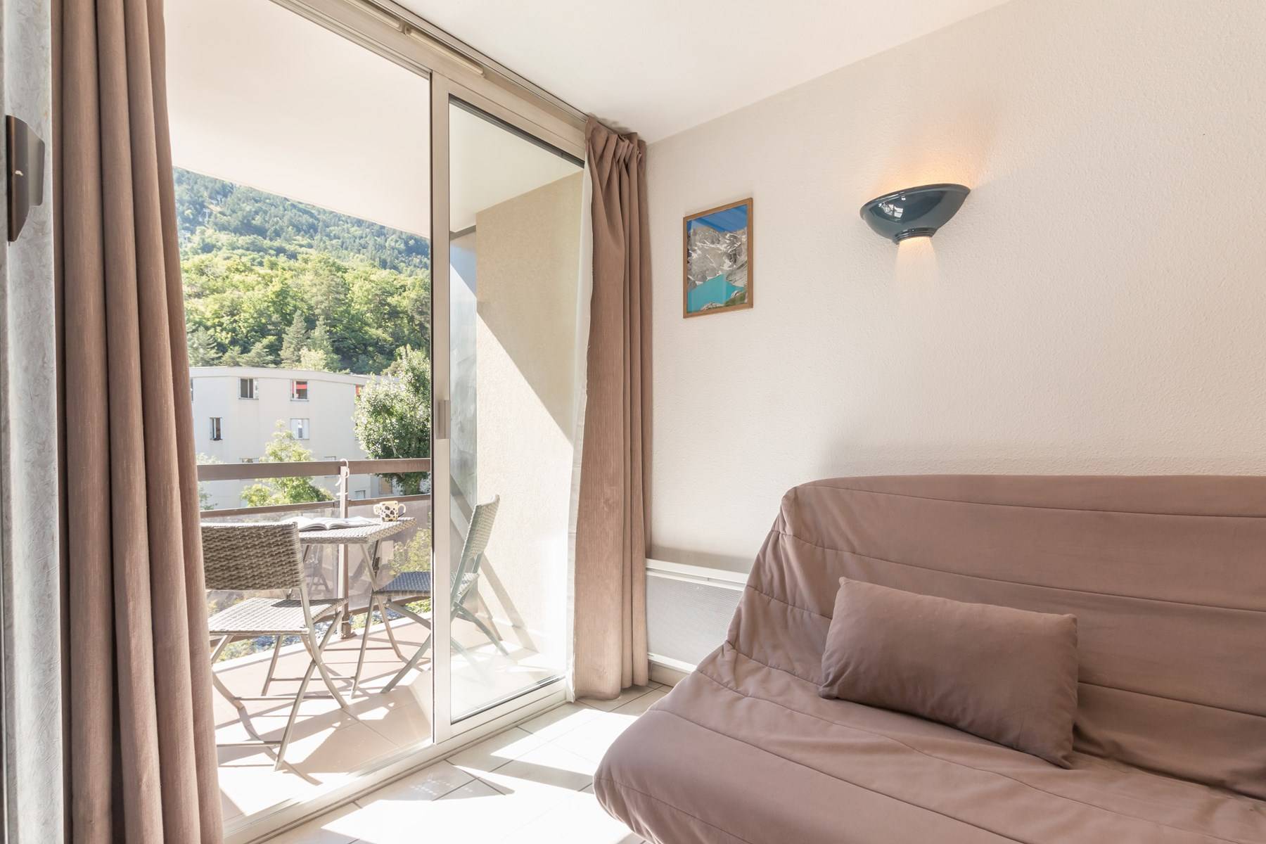 Briançon (05) - Prorel district - Residence Relais de la guisane 2 2-room apartment - approximately 30m² - up to 4 people Nice two-room apartment with sleeping area of 30m² that can accommodate up to 4 people. It is on the 2nd floor of the residence "Relais de la guisane 2" with lift, ideally located just 100m from the Prorel gondola and 200m from the center of Briançon (pedestrian walkway in front of the residence). It includes an alcove with bunk beds, a bathroom with shower and separate WC, a main room with a well-equipped kitchenette, microwave, oven, coffee maker, kettle, toaster, dishwasher, a bedroom with 1 sofa bed 140x190, closed by a wooden sliding door and giving access to the east-facing balcony with a beautiful view of the river and the mountain. Private ski locker and parking space available. Shuttle at 100m for the discovery of the valley. Our animal freinds are not admitted. The advantages of this holiday apartment: Close to the slopes and shops. Parking space available. Well equipped apartment. Our animal friends are not accepted. Cleaning with disinfection included.