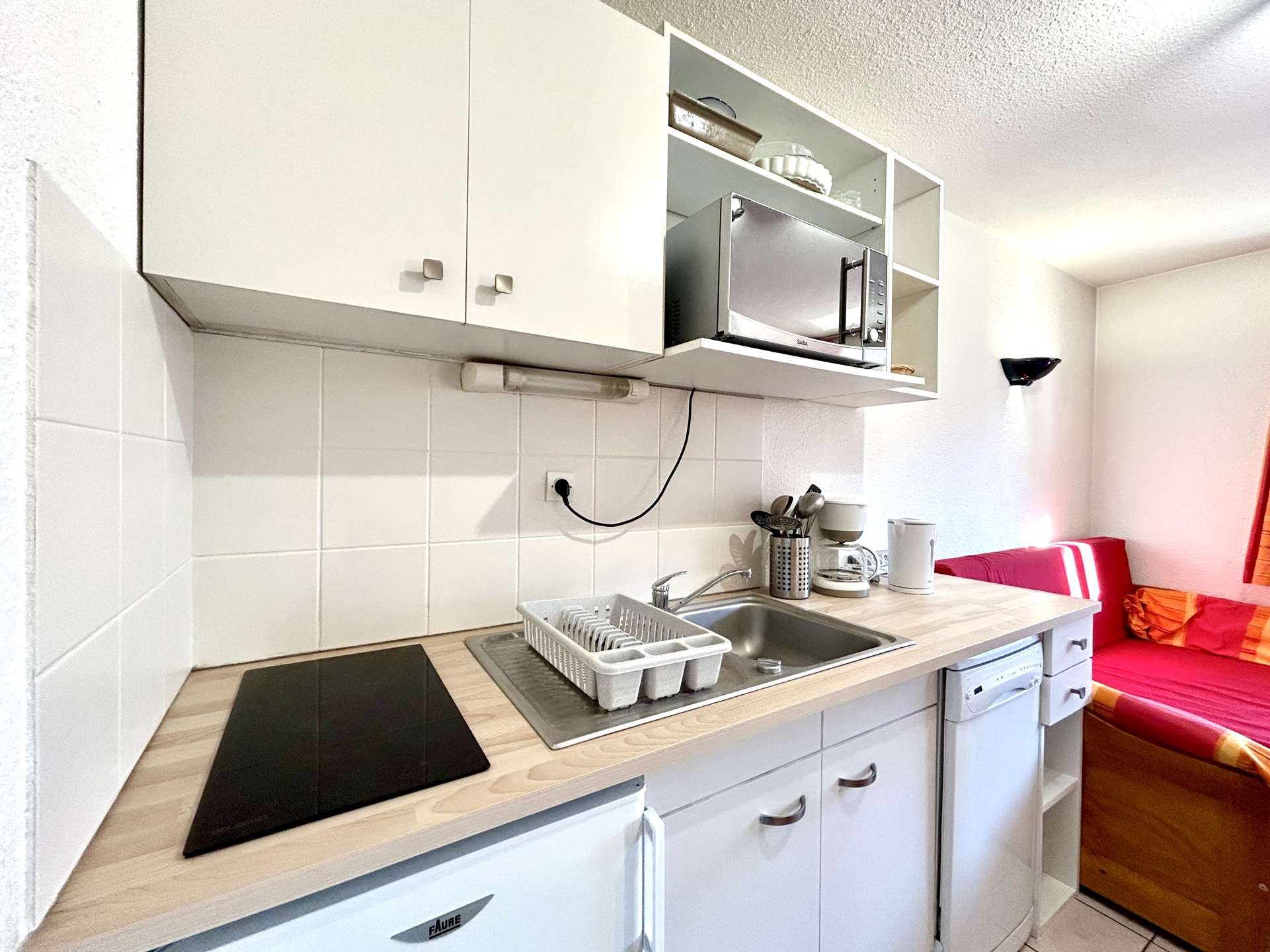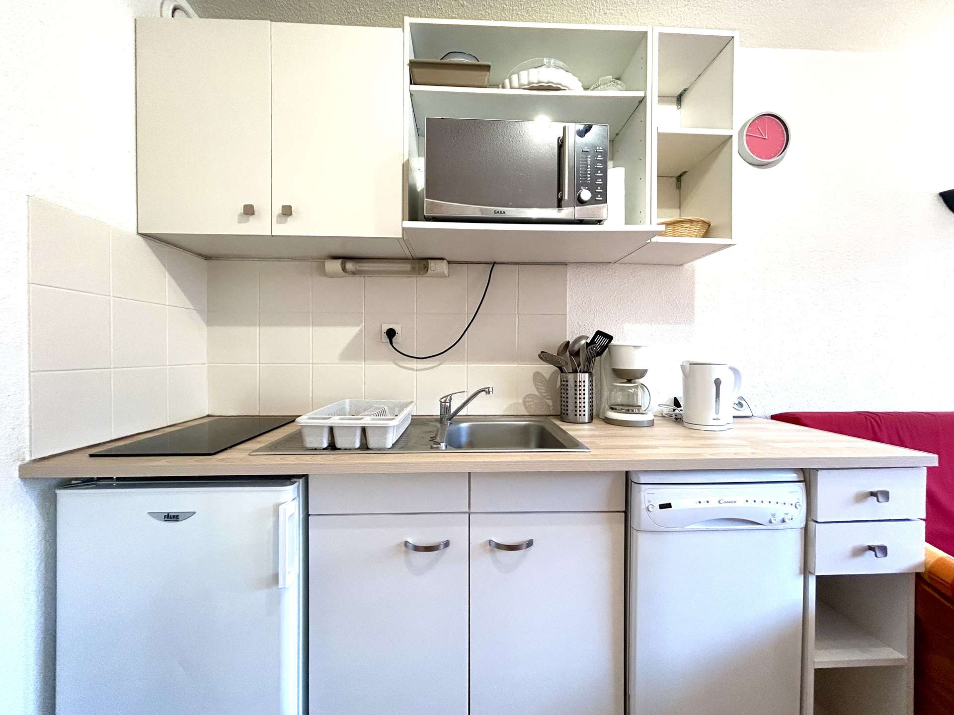 Two-room apartment with sleeping area, 30m² that can accommodate up to 4 people. Classified 2 stars, it is on the 3rd floor of the residence "Relais de la guisane 2" with lift, ideally located just 100m from the Prorel gondola and 200m from the center of Briançon (pedestrian walkway in front of the residence). It includes an alcove with bunk beds, a bathroom with shower and separate WC, a main room with kitchenette with microwave, coffee maker, TV, dishwasher, a bedroom with 1 bed 140x190, closed by a movable rigid curtain and giving access to the east-facing balcony with a view of the mountain and the old town. Private ski locker and parking space available. Shuttle at 100m for the discovery of the valley.