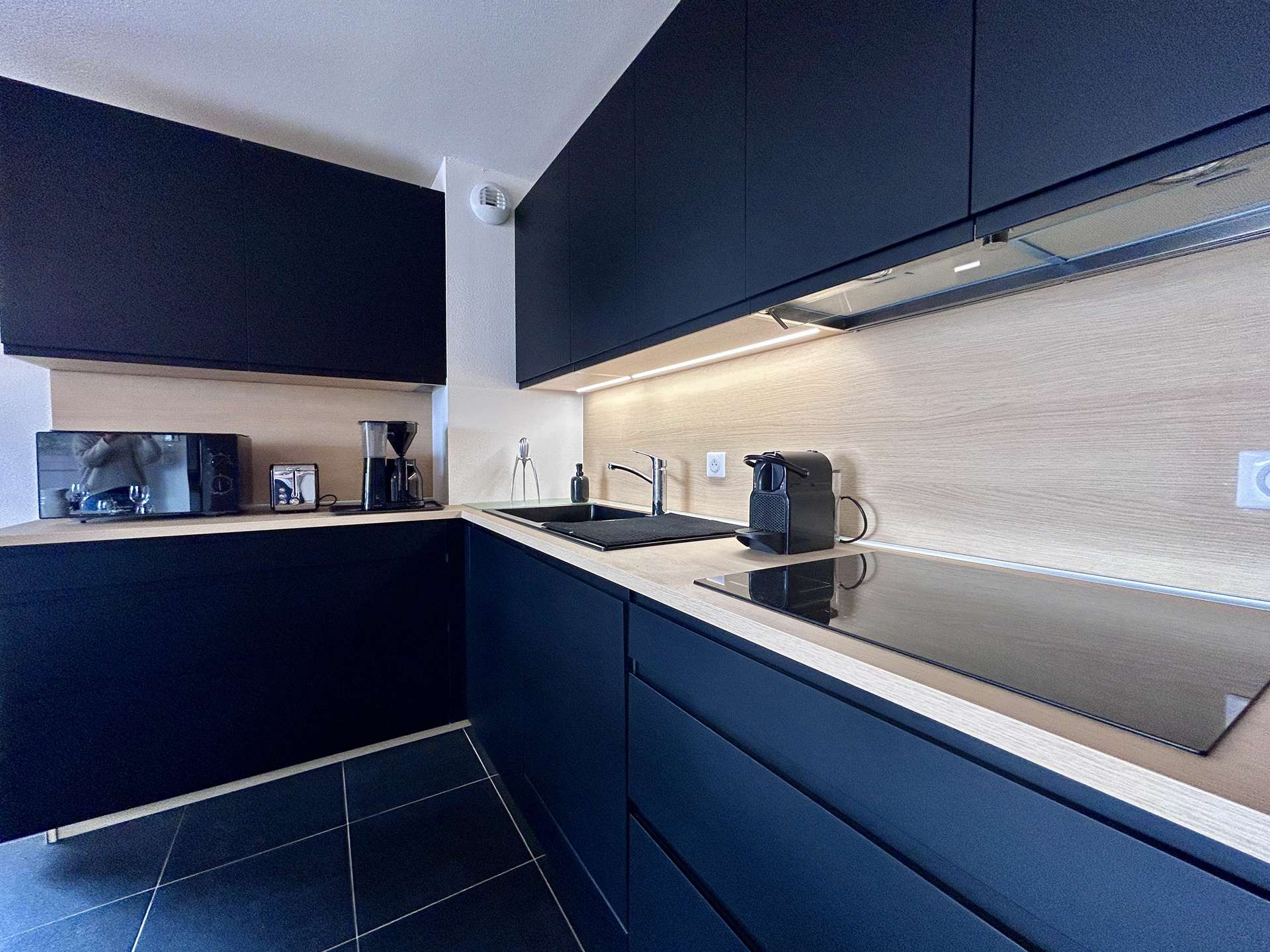 The main room, bright, has a kitchen open to the living room, well equipped (oven, refrigerator, microwave, 3-burner induction hob, capsule coffee machine, kettle, etc.), a living room giving access to the terrace.