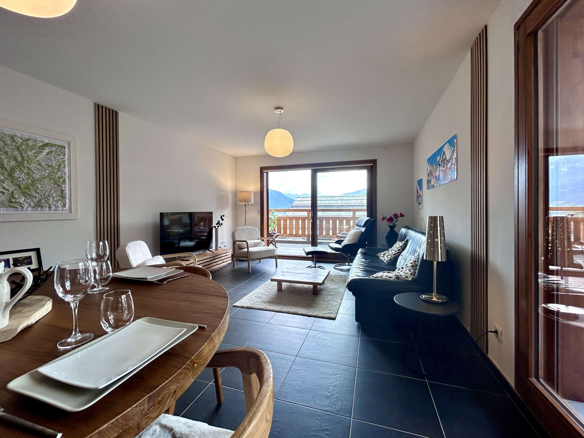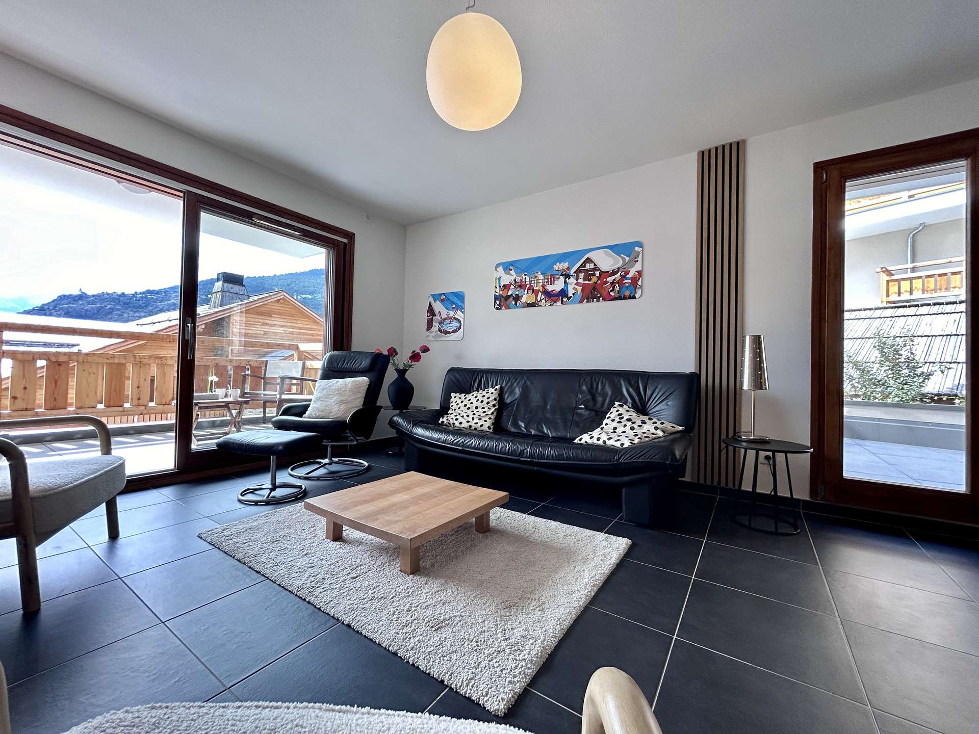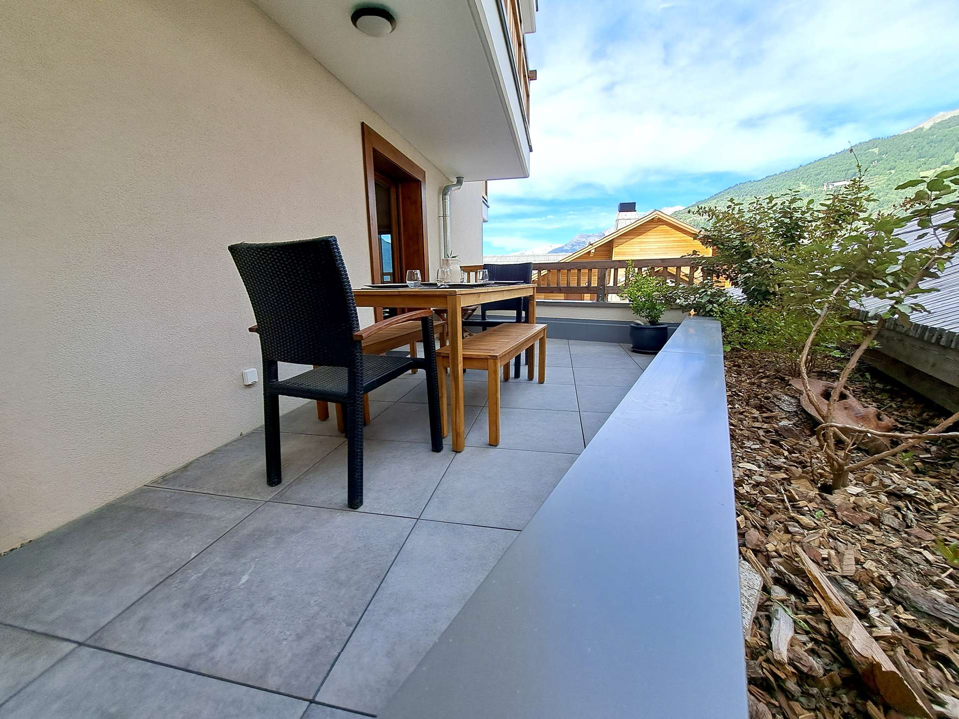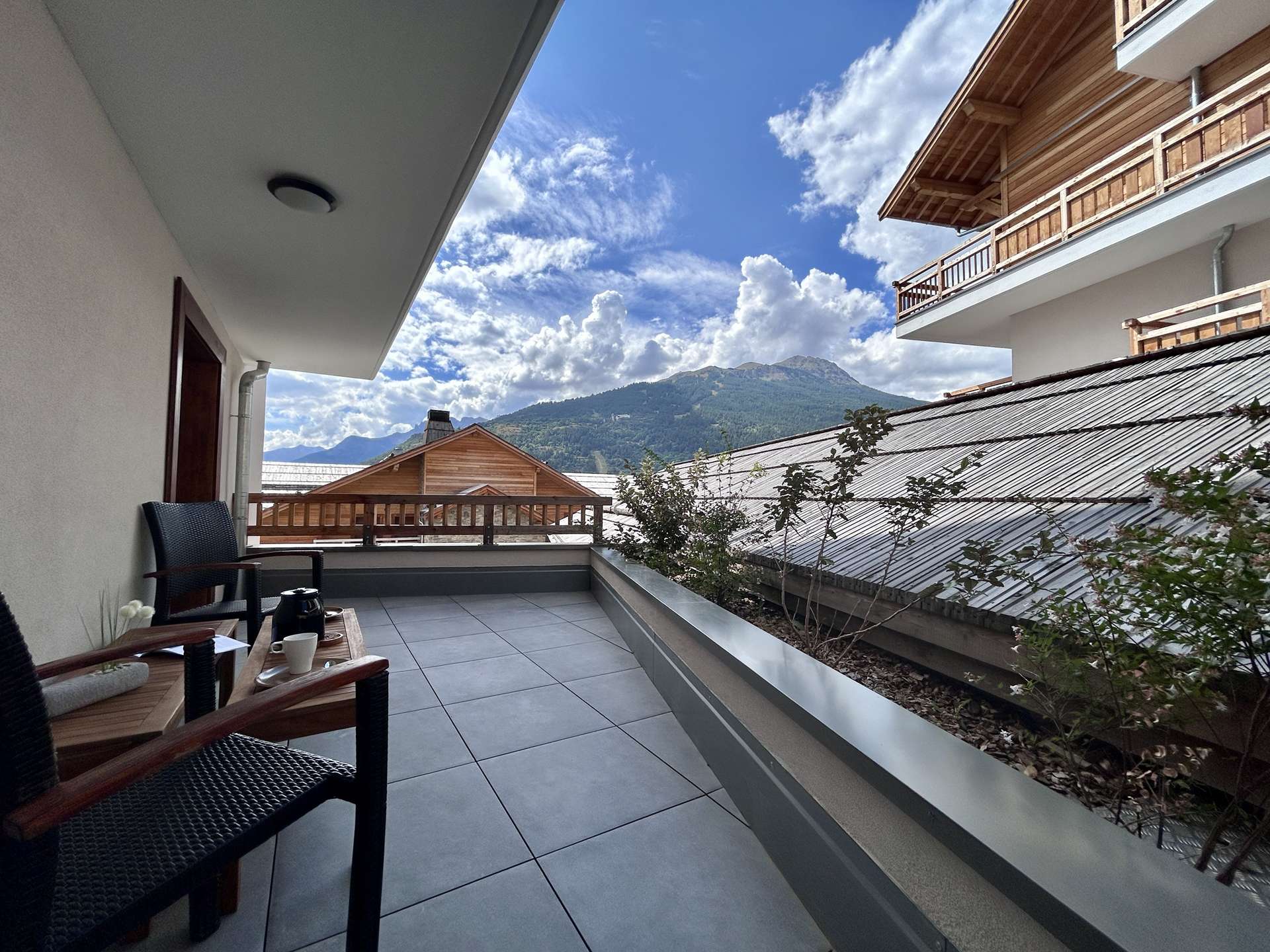 It has a terrace and a balcony facing South/South-West with breathtaking views of the city and the Mélezin mountain and the Prorel.