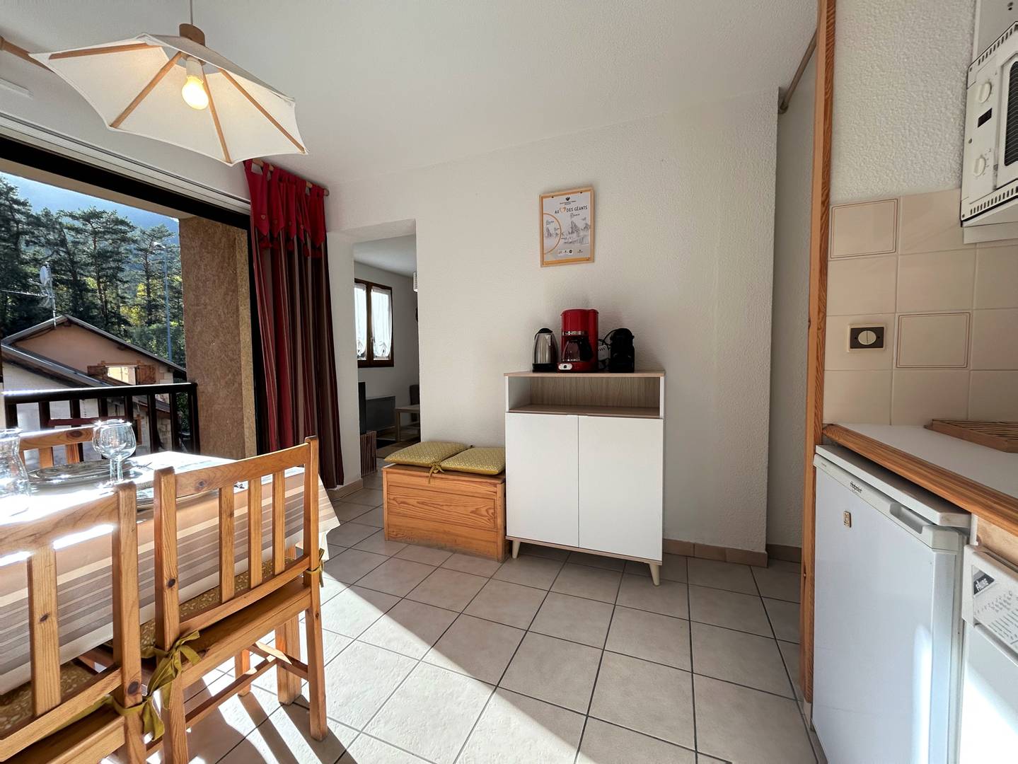 La-Salle-les-Alpes (05) - Entrance to the old village - 2 rooms Cabin - approximately 42m2 - up to 4 beds Beautiful apartment located on the 1st floor of the residence located 400m from the start of the Aravet slopes and 400m from the center of the old village of La-Salle-les-Alpes. It accommodates up to 4 people and consists of: - An entrance including a cabin area with two single bunk beds (80x190) - A bedroom with a double bed (140x190) - Separate toilets - A room bathroom with bathtub - A living room opening onto the carefully fitted and equipped kitchen (fridge, oven, dishwasher, washing machine, induction hob, capsule coffee maker, etc.) - A south-facing balcony - west - A living room with convertible sofa and television Collective parking at the rear of the residence. Private ski locker available The advantages of this apartment: Bright, well equipped in a quiet residence. End of stay cleaning included Our animal friends are not accepted