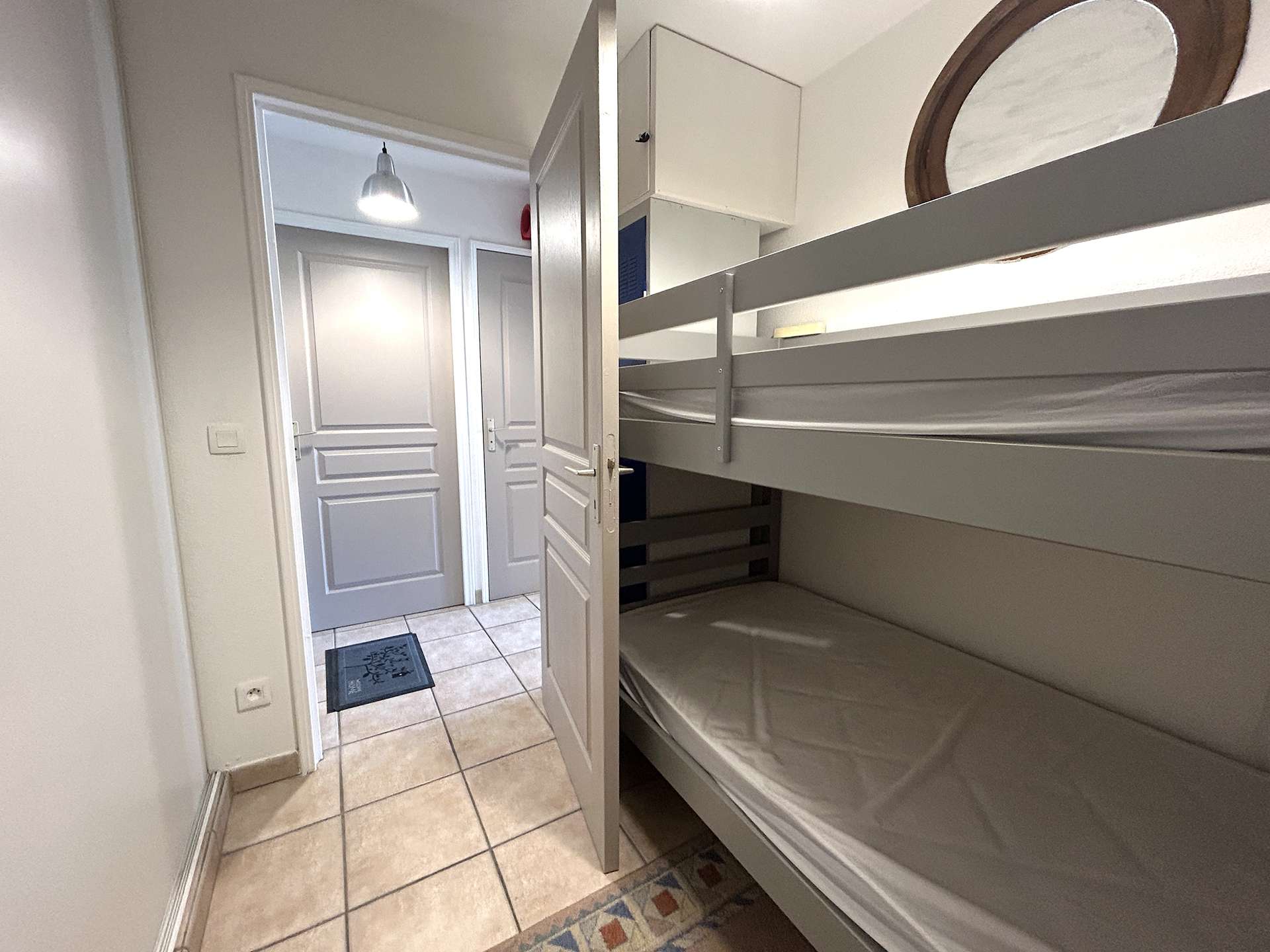 This holiday apartment includes a bedroom with a 160 double bed, an alcove with 90 bunk beds, a living room with a 140 sofa bed and a television, the kitchen is equipped. The bathroom and WC are independent.