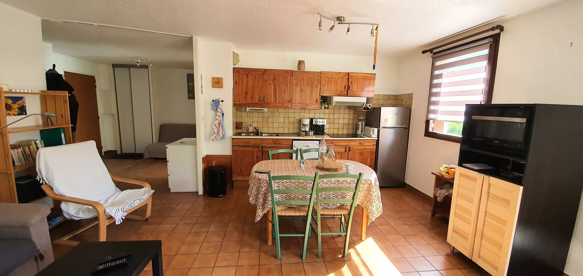 Comfortable apartment for 6 people on the ground floor, not overlooked, facing the mountain, south-east facing, opposite the Pontillas cable car.
