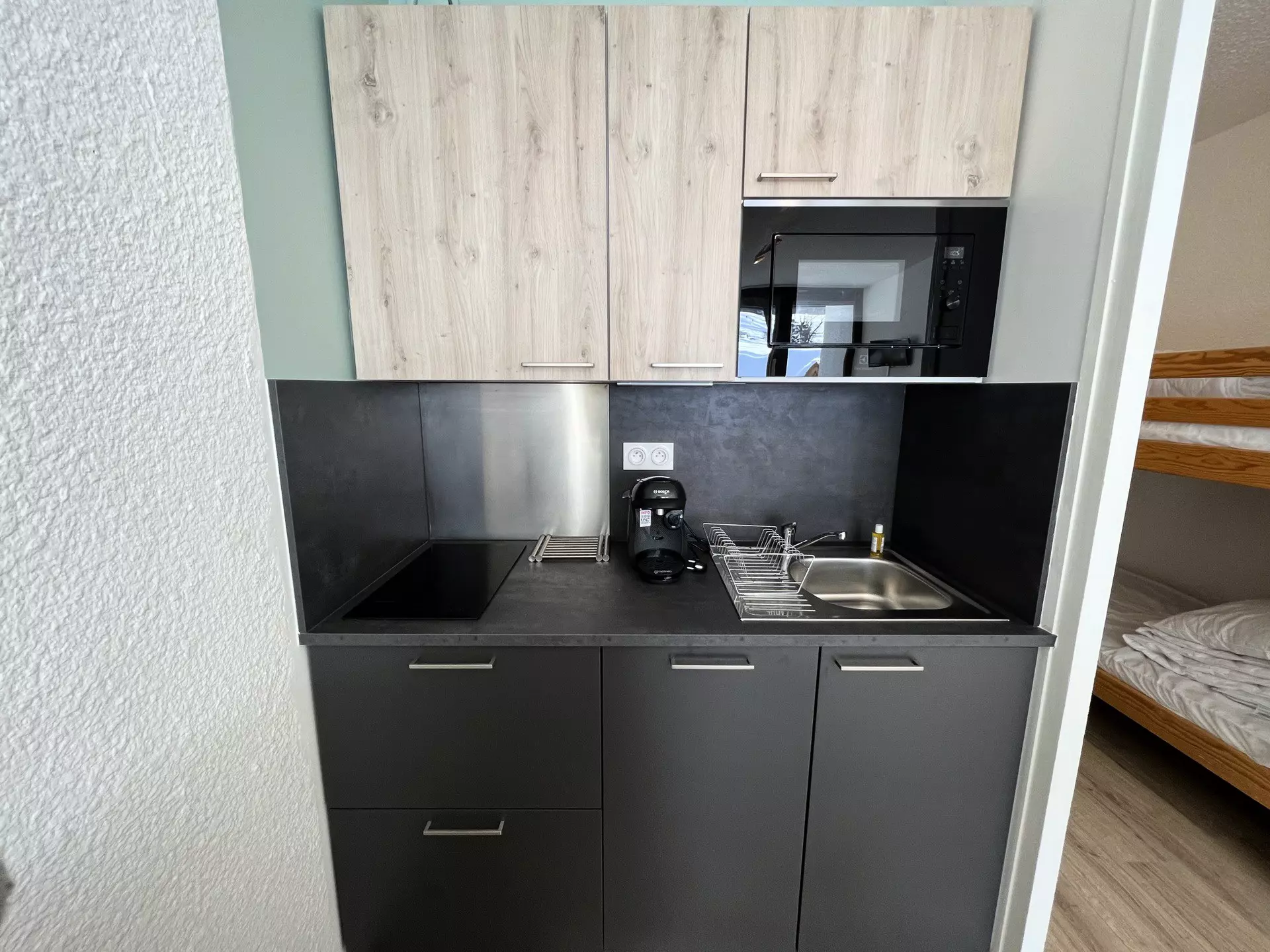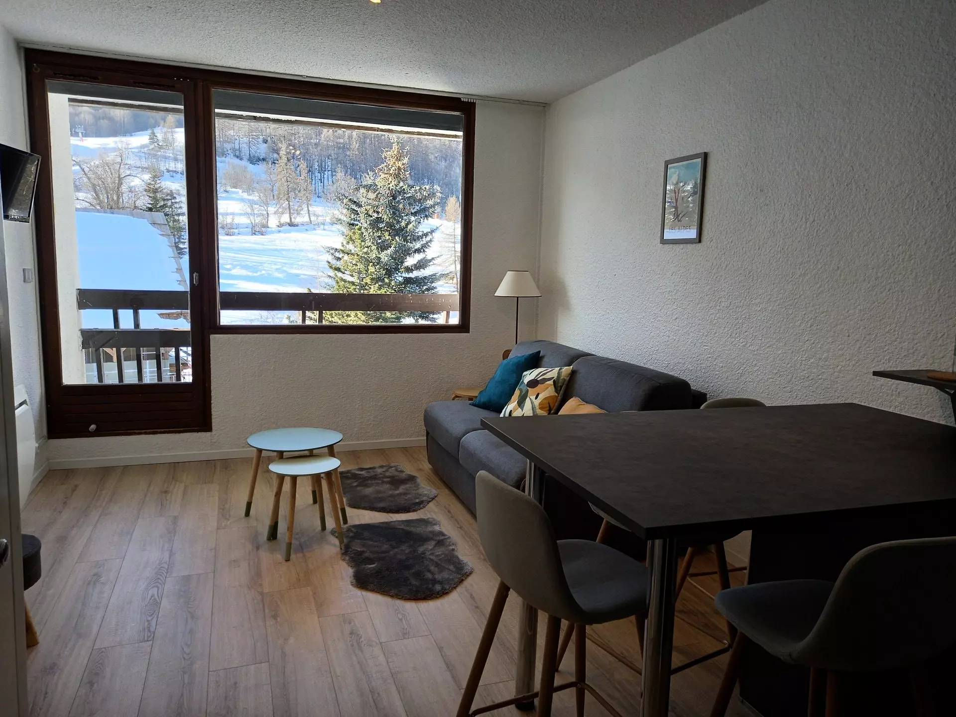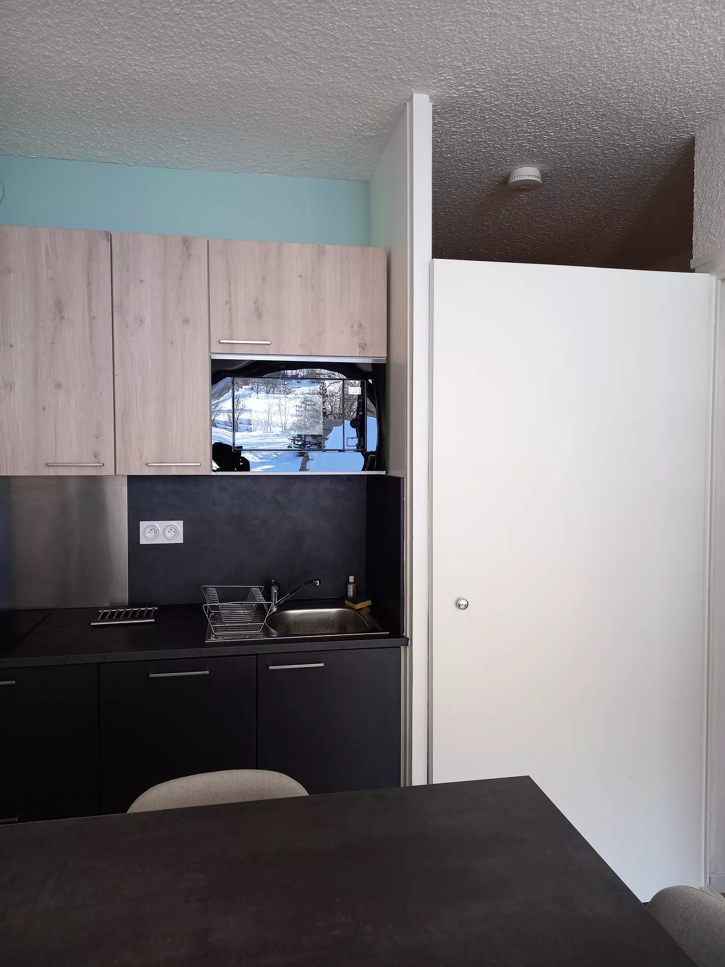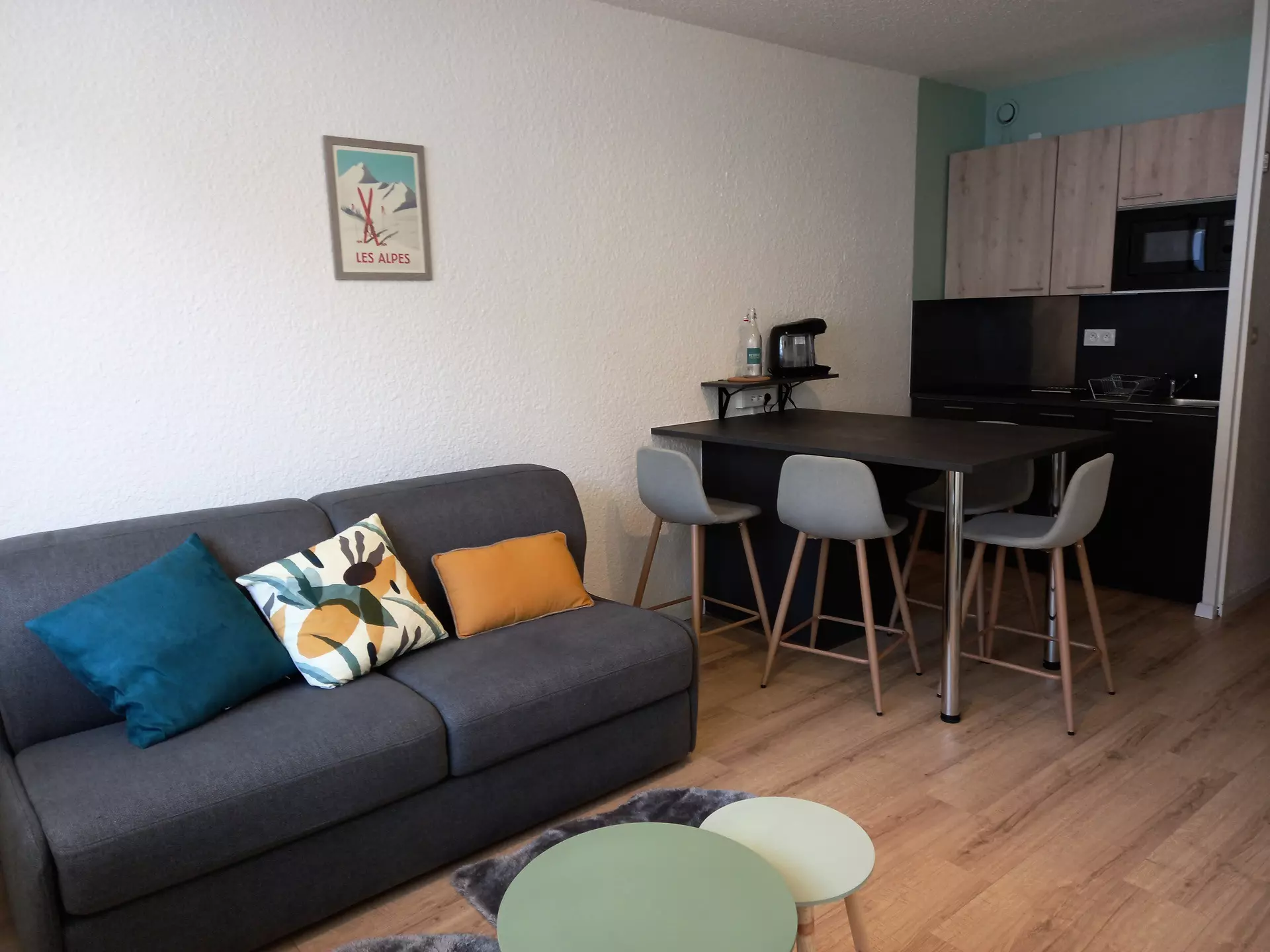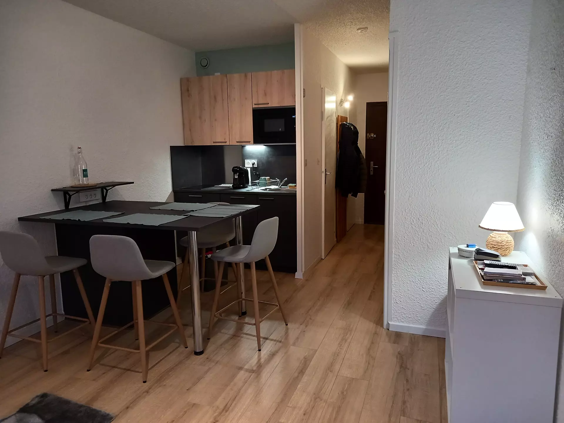 25 m² studio for 4 people, ideally located at the foot of the slopes in a residence 5 minutes from the shops on foot and with a lovely view of the mountains.