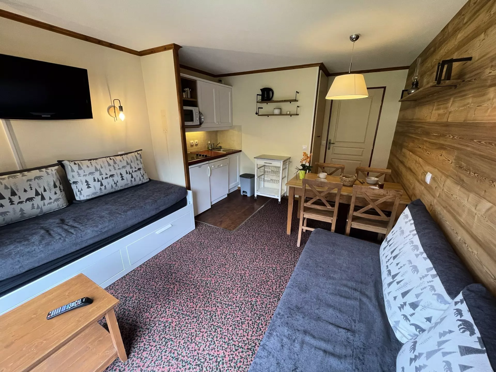 Functional and offering a superb view of the mountains, this ultra-cozy apartment is perfect for a getaway with family or friends. A warm setting for your stay in the great outdoors, to be experienced in all seasons