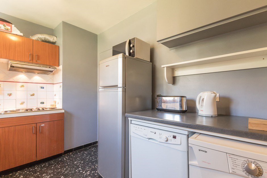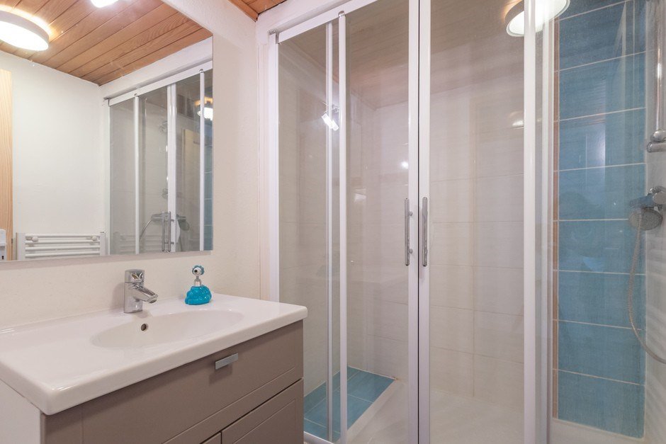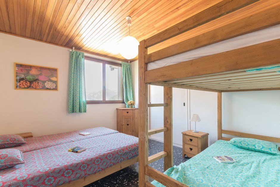 The apartment has a large south-facing balcony with a beautiful view of the slopes, a bedroom with a double bed plus an umbrella bed A second bedroom with 2 single beds + 2 bunk beds. A double living room with a sofa bed for 2 people as well as a television set An independent fitted kitchen Two bathrooms, one with shower and the other with a bath plus wc An independent wc The beds are equipped with blankets.
