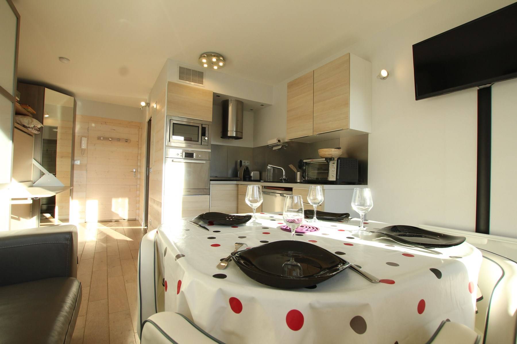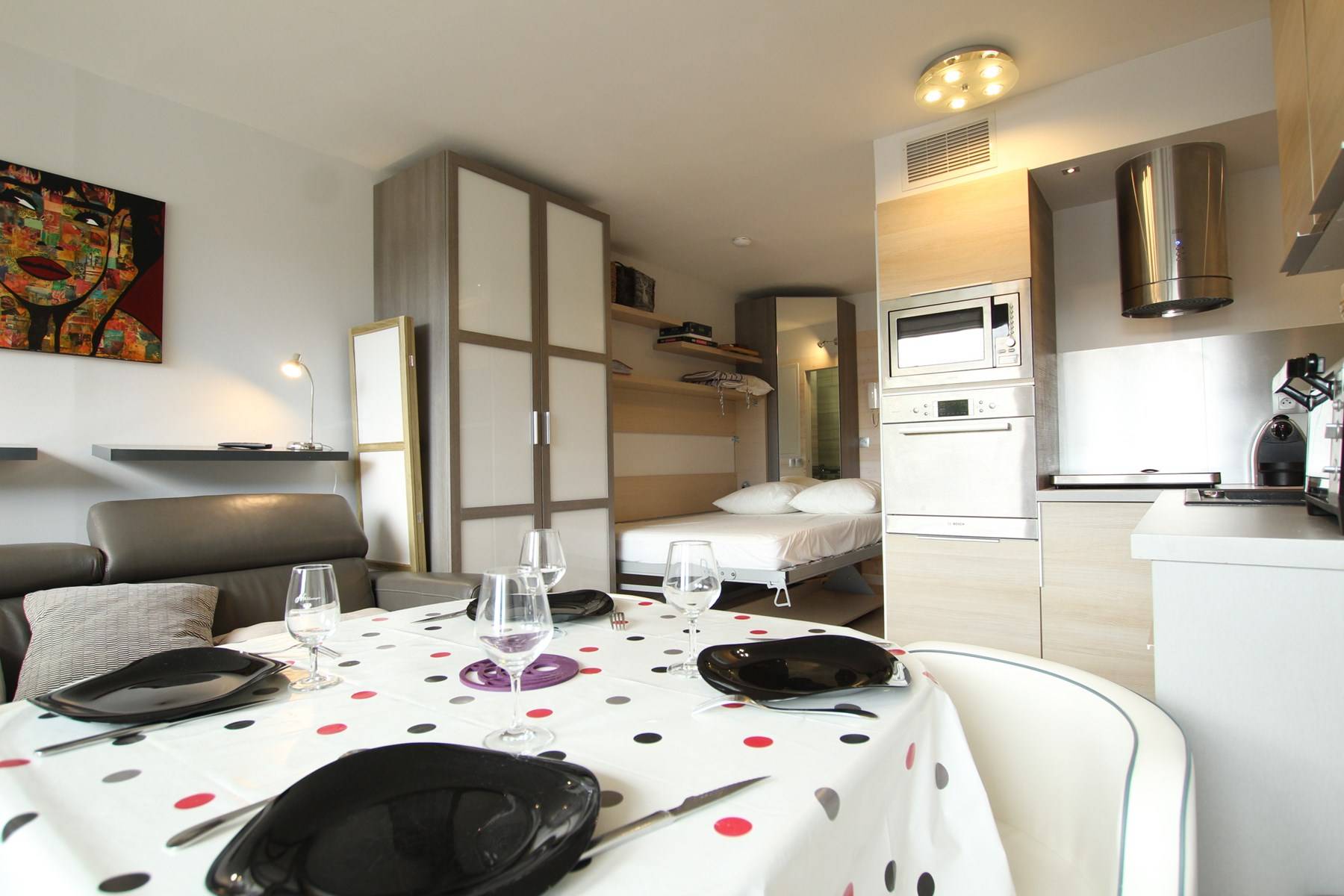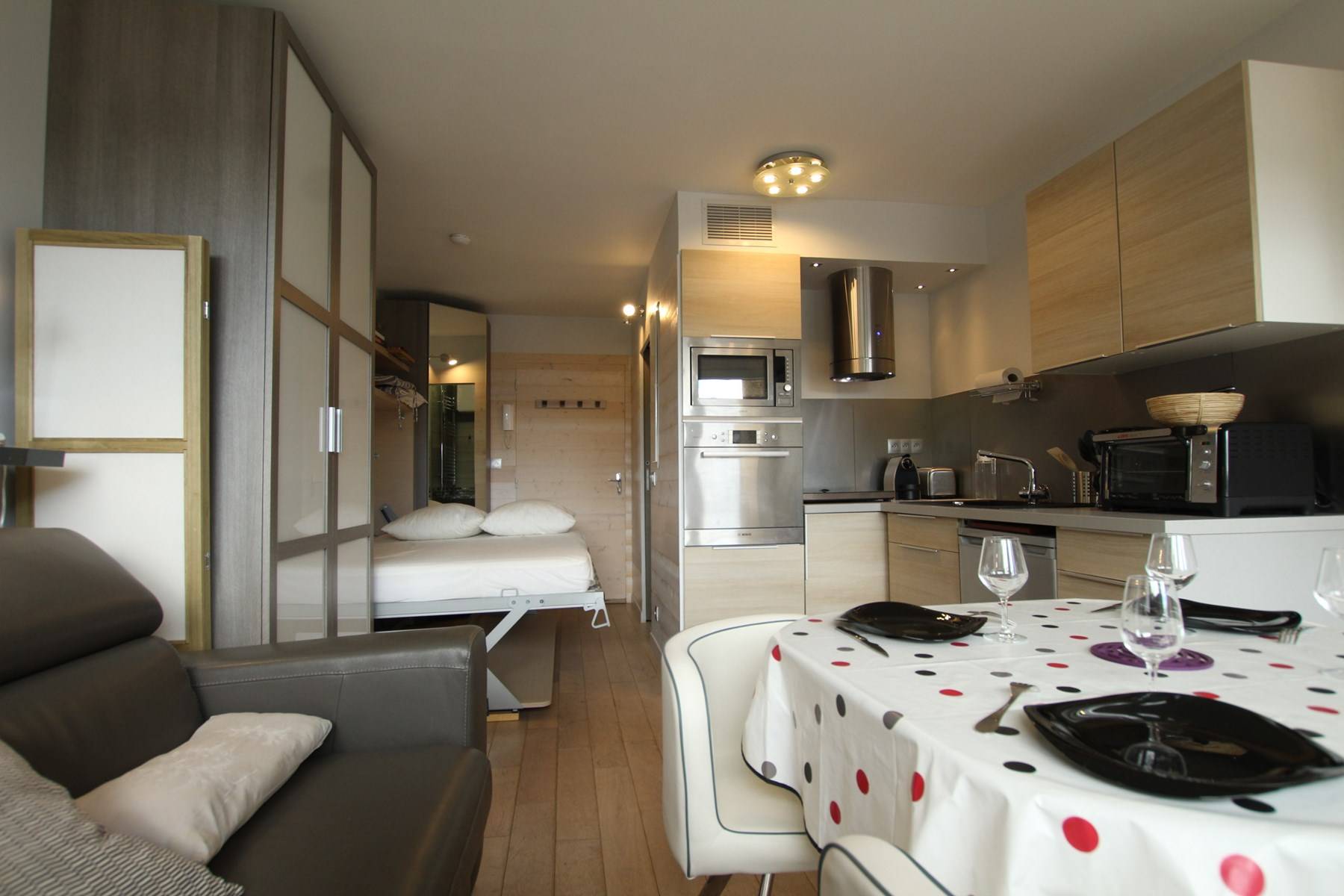 This renovated studio (classified 3 stars) consists of an alcove with a folding bed, a living room with sofa bed 2 people and a tv. The kitchen area is equipped. The bathroom and the toilet are in the same room.