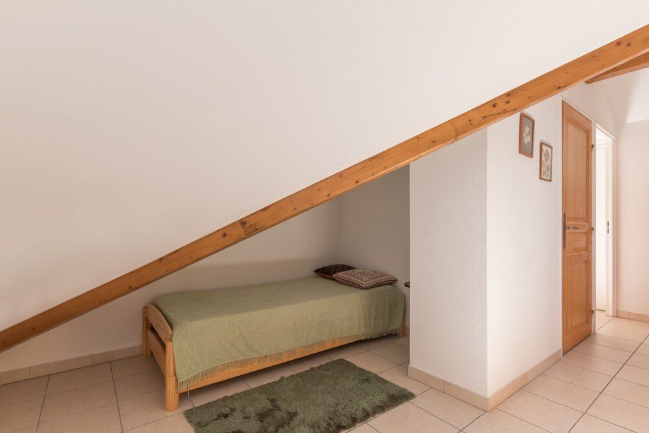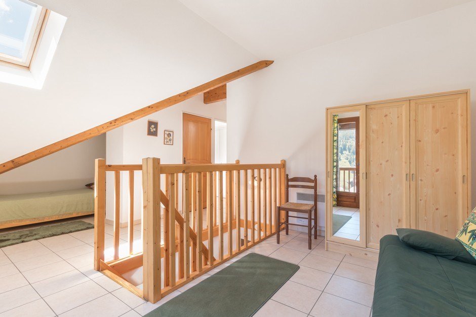 Upstairs it includes a mezzanine with 2 single beds and a balcony And a bedroom with a double bed + a bathroom with separate toilet Downstairs there is There is a bedroom with a 140 cm bed A living room with a fitted balcony A fitted kitchen A bathroom and separate toilet