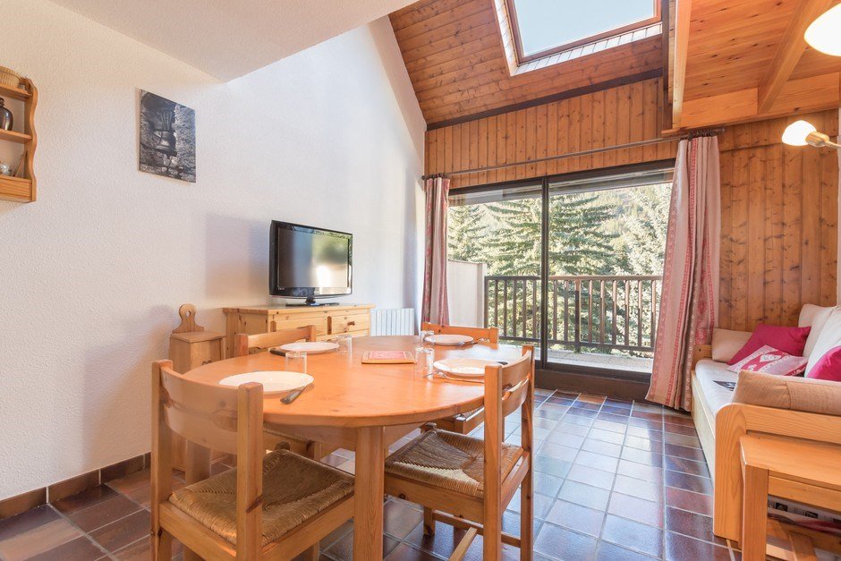 Chantemerle, Tamborel (05) Studio corner mountain + Mezzanine - approximately 40m² - 6 people This duplex apartment is composed as follows: - a mezzanine opening onto the living room, with a double bed 140 - a closed cabin with window and 2 bunk beds - living room with trundle sofa bed for 2 people, equipped with television - A kitchen area with a microwave cooker, 4 hobs, 1 fridge - A bathroom with shower and washbasin - The toilets are independent ski locker car park Pets are not allowed Cleaning with disinfection included