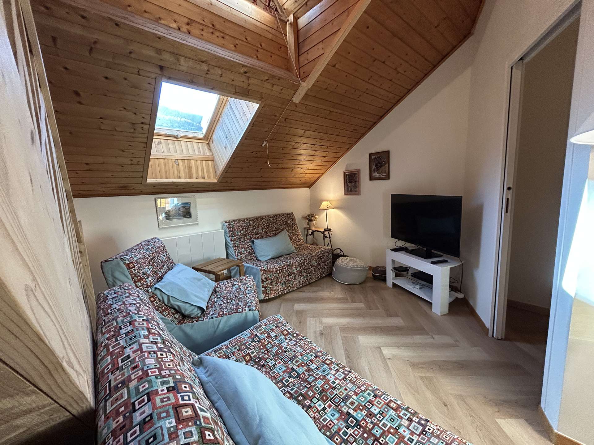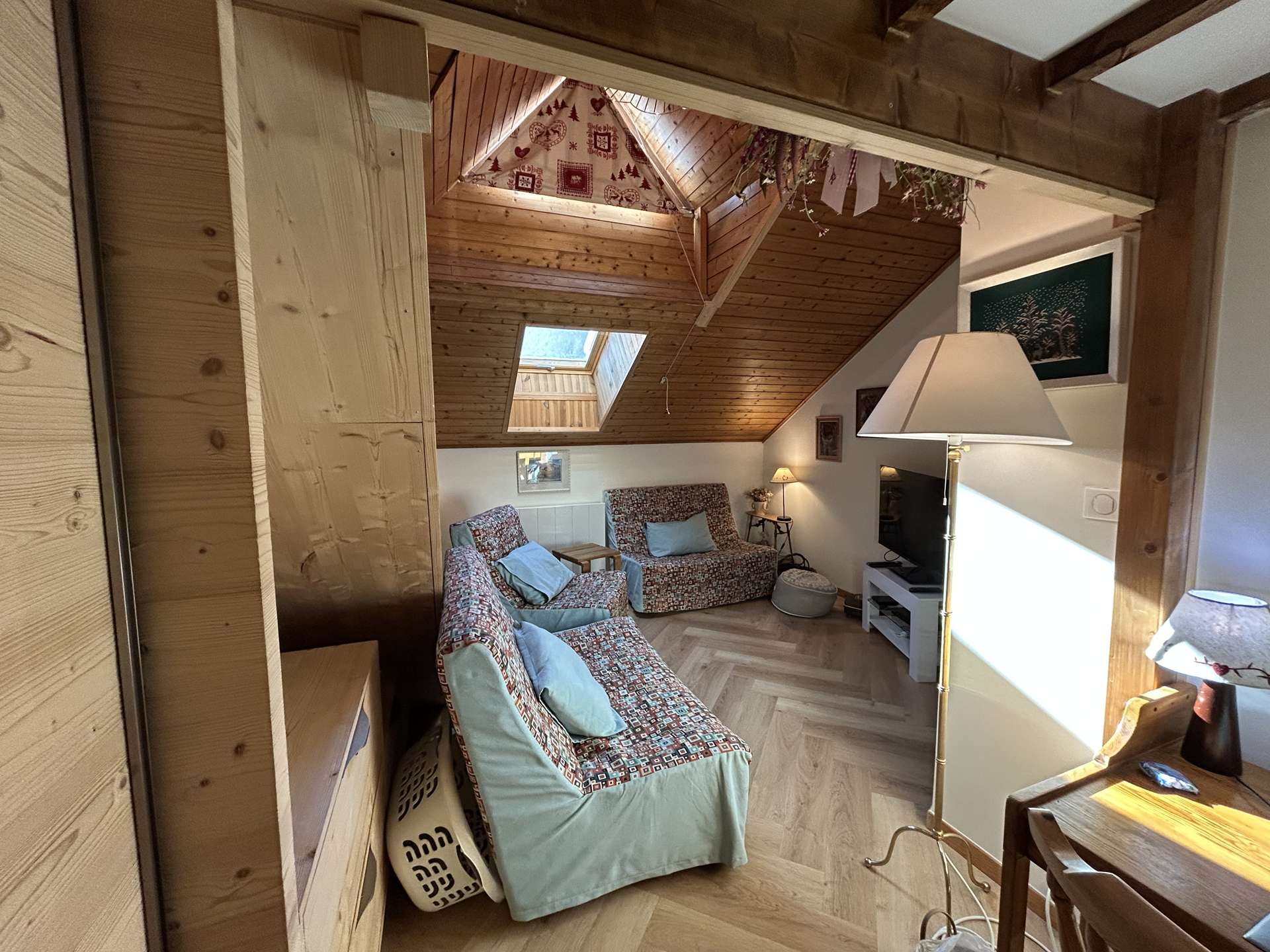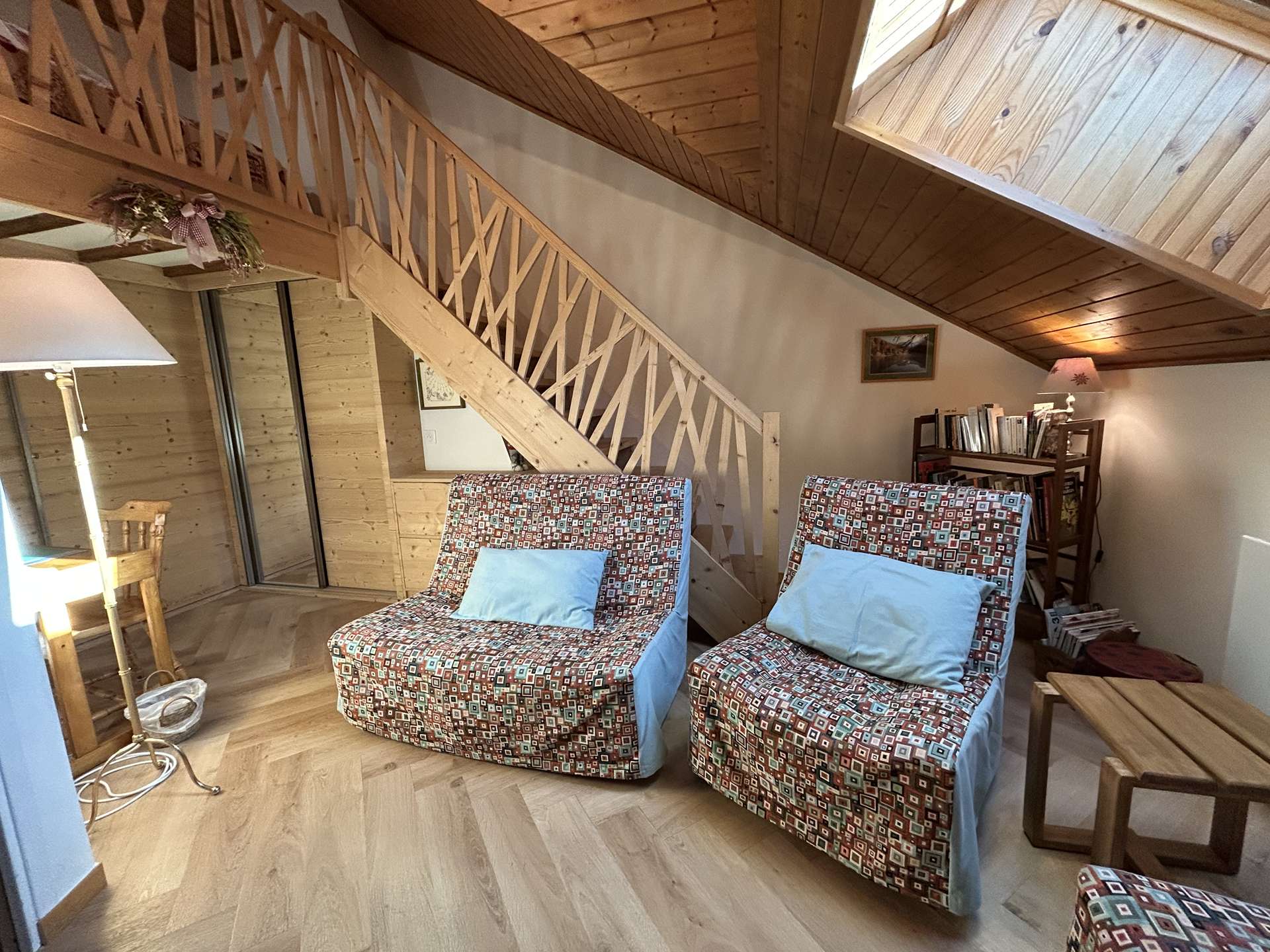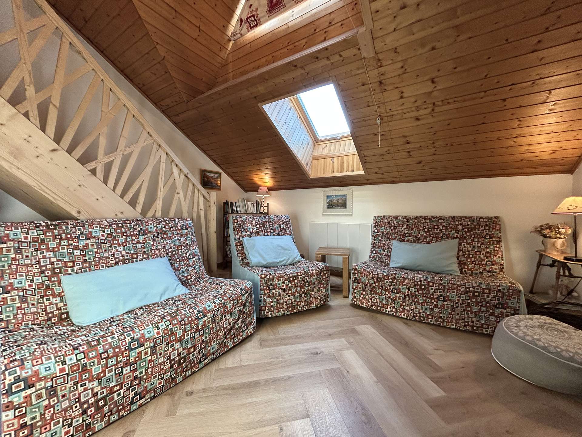 Holiday apartment - 9 beds - approx. 70m² This triplex is composed as follows: On the ground floor: A bedroom with a 160 bed, A living room with TV, DVD player and mini-channel. An equipped kitchen area. A bathroom and separate wc. Upstairs: A room with a double bed 140 on the mezzanine and downstairs a single bed, office area, TV area A bedroom with 2 bunk beds + 2 single beds. A bathroom with shower, separate toilet and a washing machine. wifi PARKING. ski locker OUR FRIENDS PETS ARE NOT ALLOWED Cleaning with disinfection included