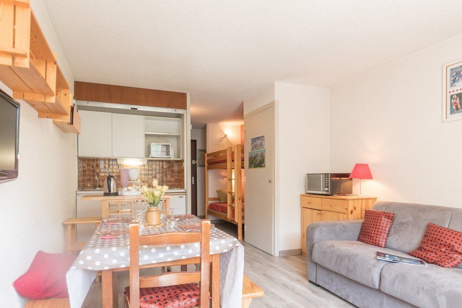 Studio on the 2nd floor (access with elevator) with equipped South balcony, a sleeping area with 2 bunk beds