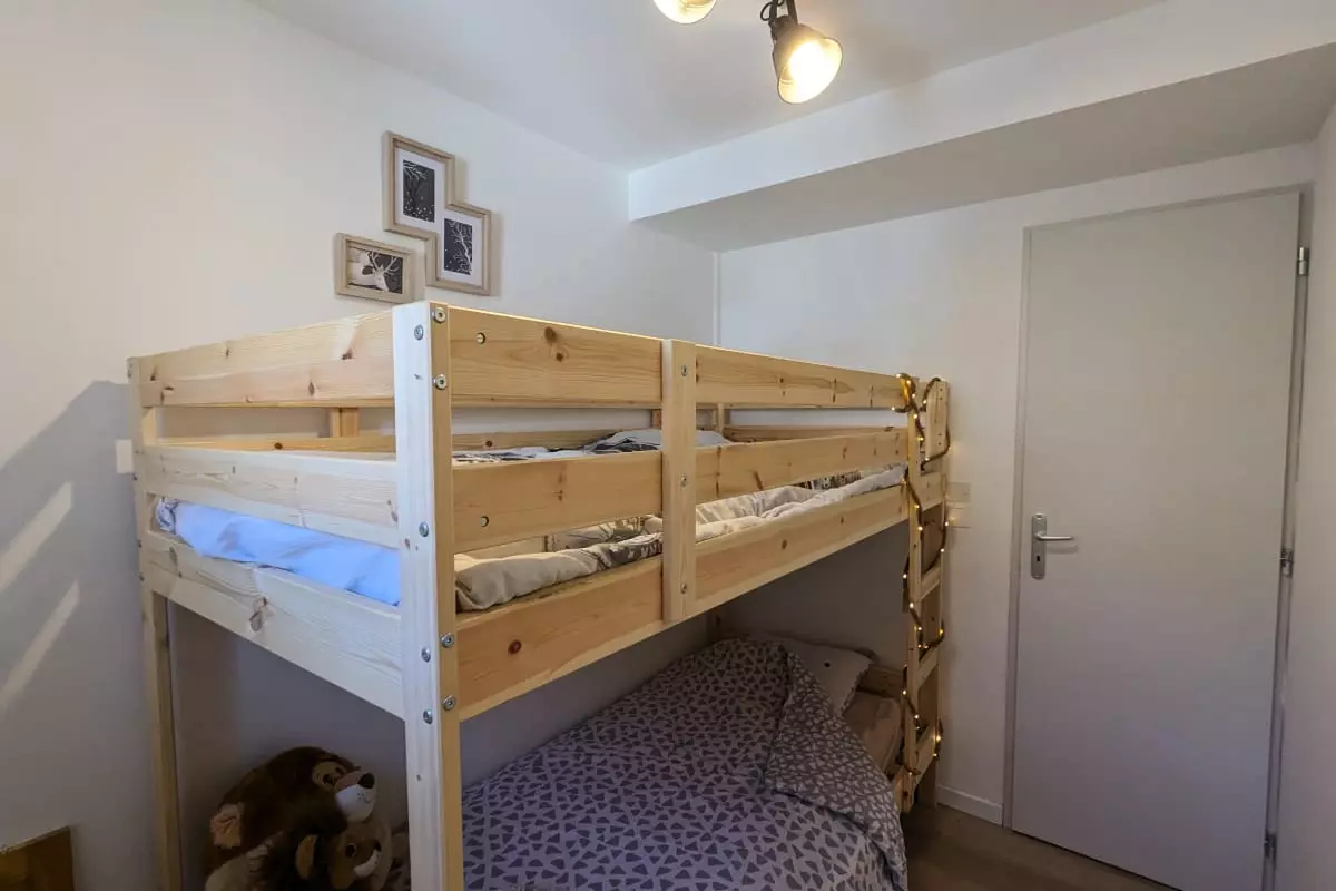 - 2 bedrooms with a double bed and a bunk bed;