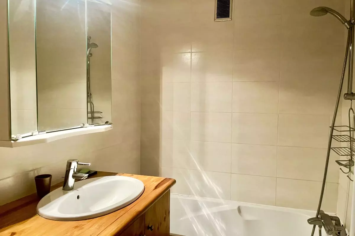 - a bathroom with bathtub - shower;