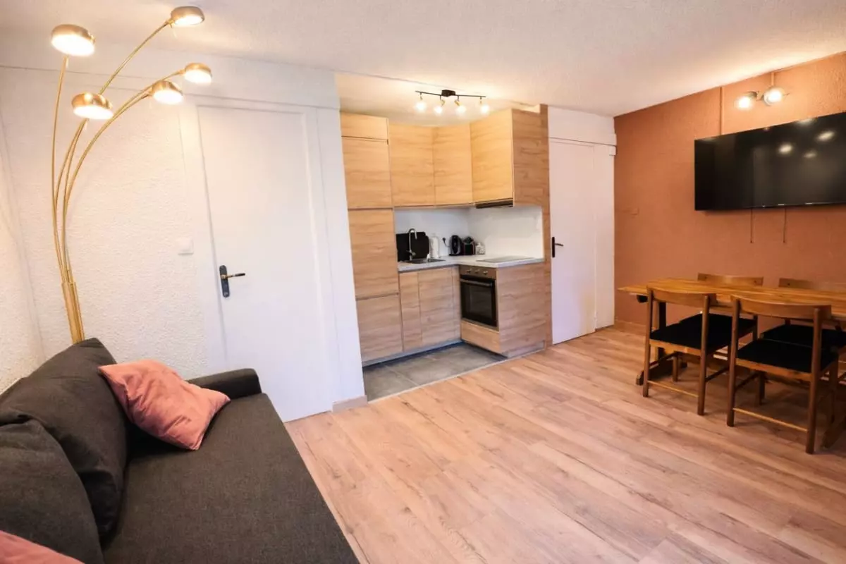 The apartment benefits from an ideal location, as the residence is opposite the free shuttles to access the slopes in less than 5 minutes.